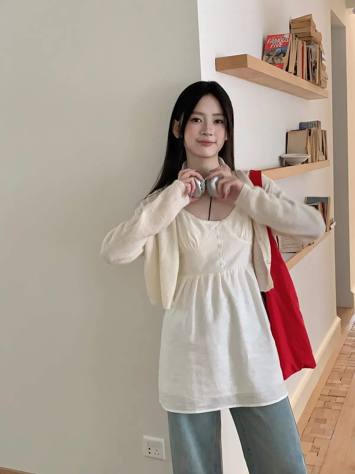 8002 芝士海鹽 低飽和奶油雲朵罩衫