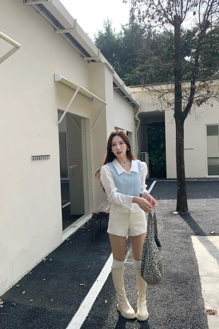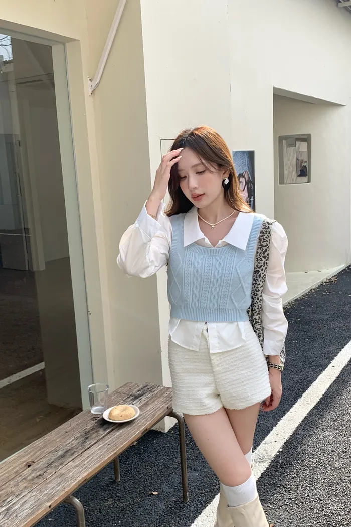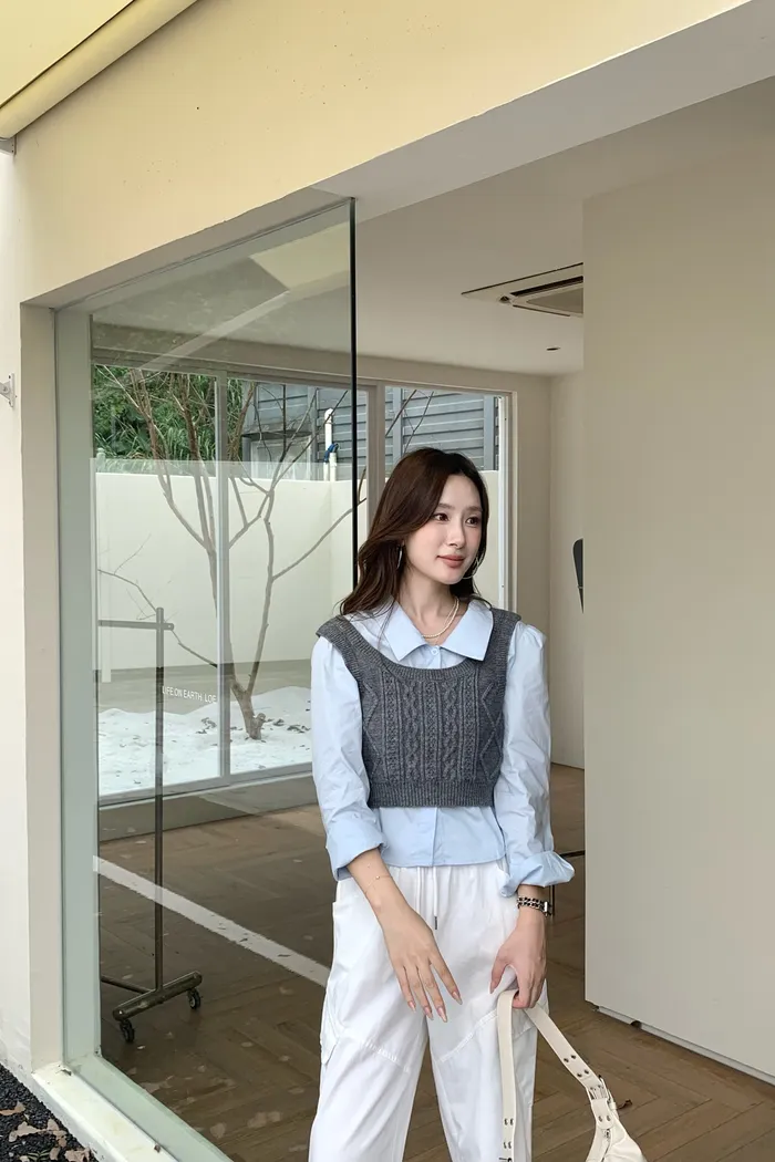 單穿襯衫比較單調 搭配馬夾有點基本又有點小設計