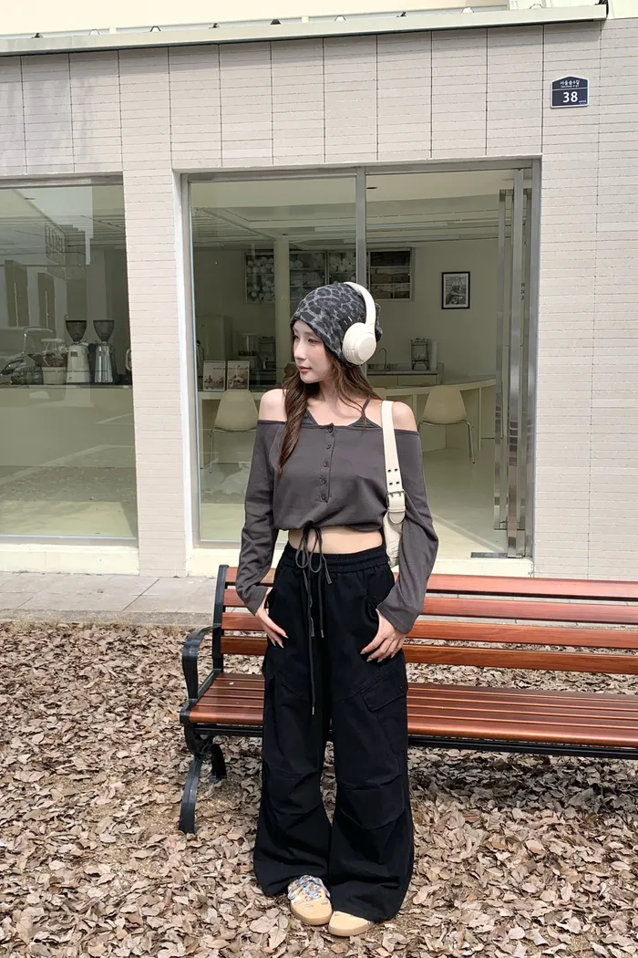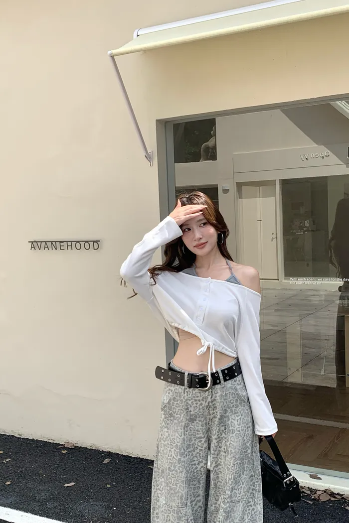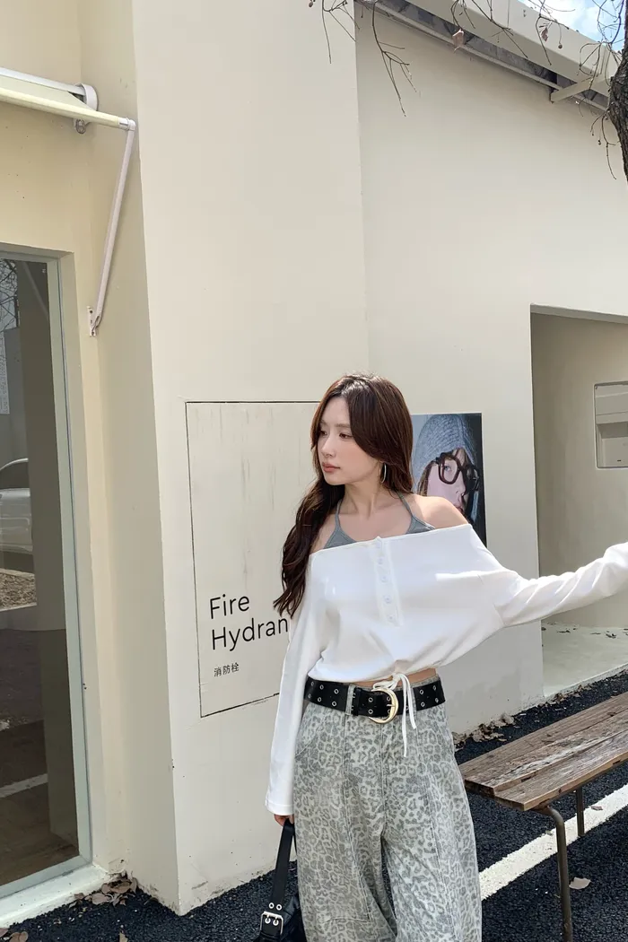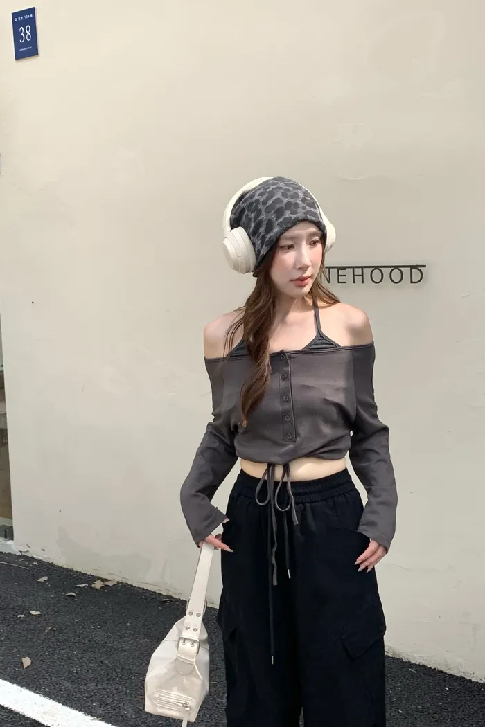 8165 清冷釣系 綁帶一字肩上衣