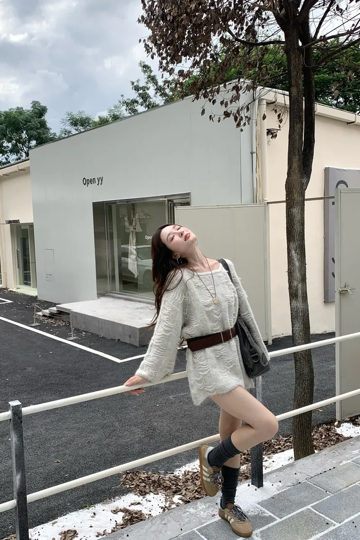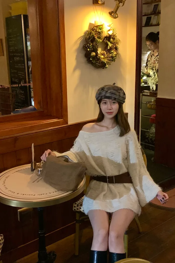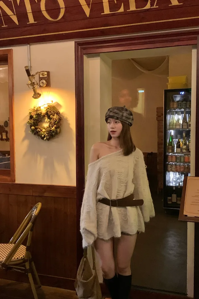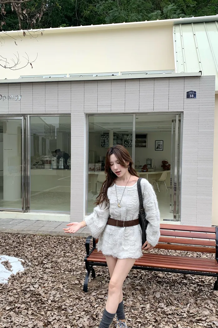 5566 薄霧月光 慵懶毛織感毛衣(皮帶)