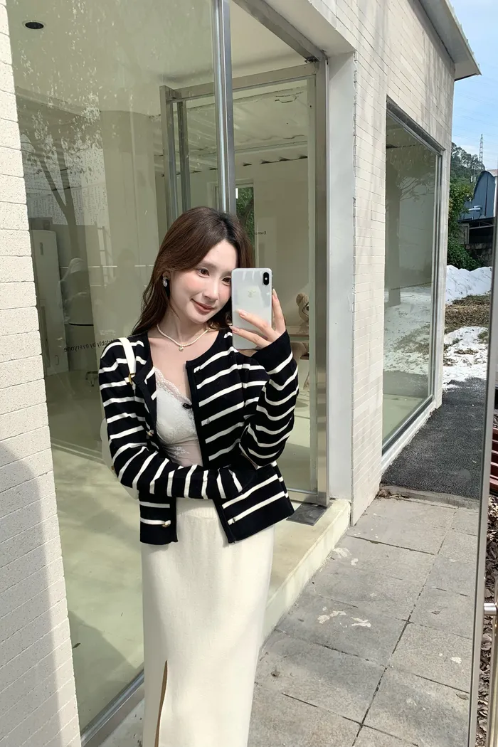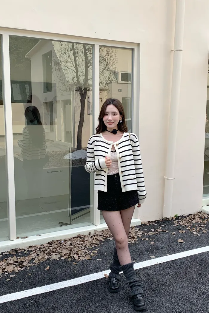 878 愛丁堡秋天 條紋小香風外套