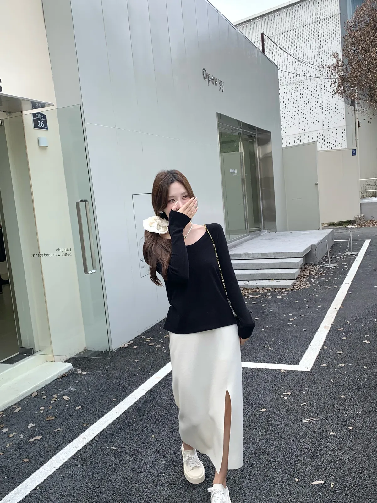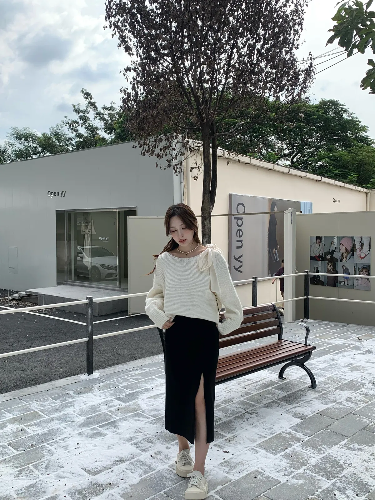 820-1 半熟芝士 針織厚磅前開叉半裙