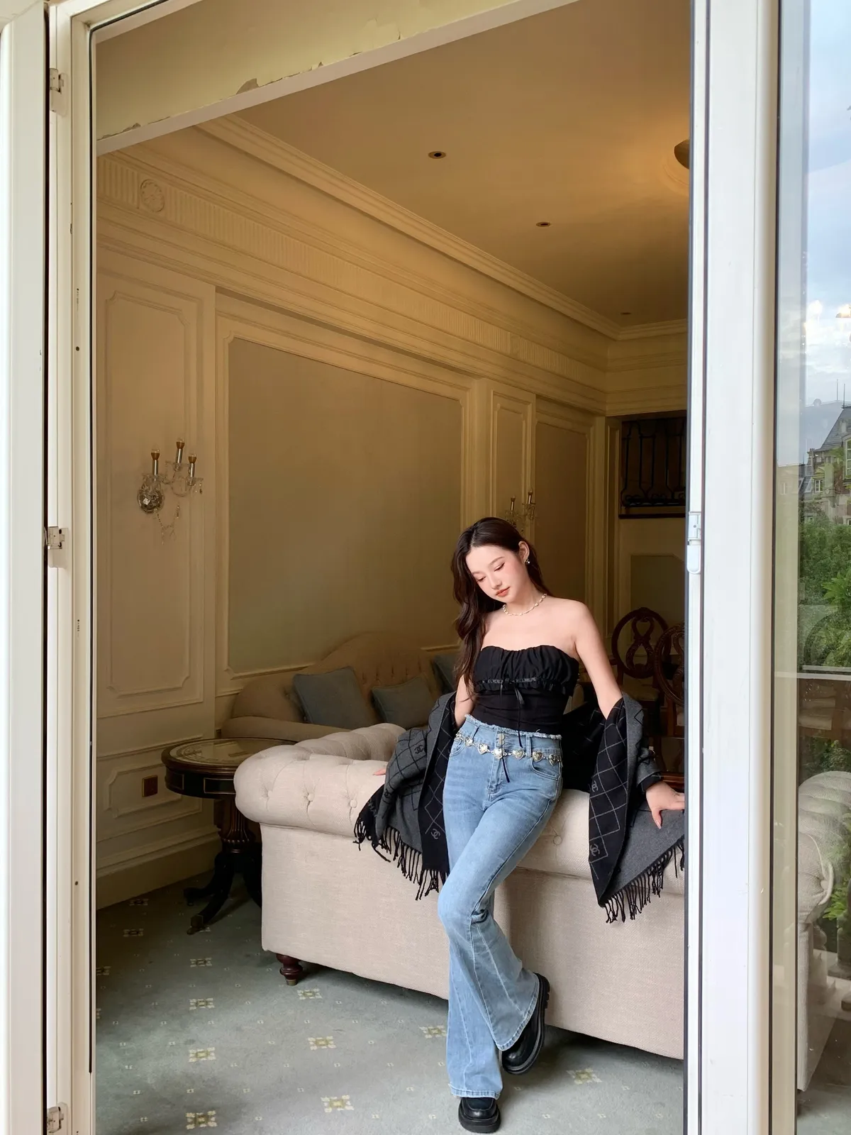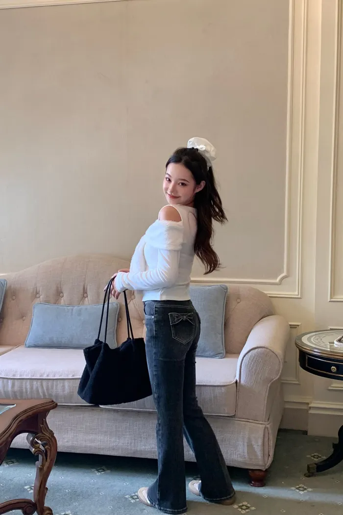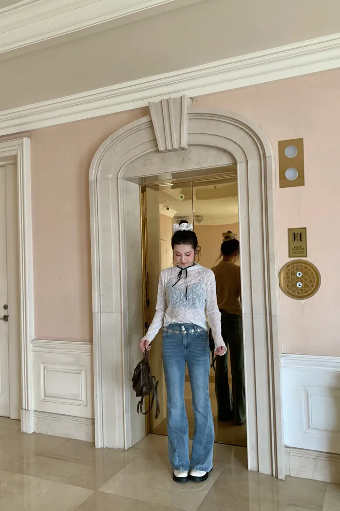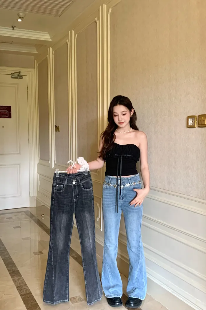 9095 芭比公主 蝴蝶結毛鬚喇叭褲