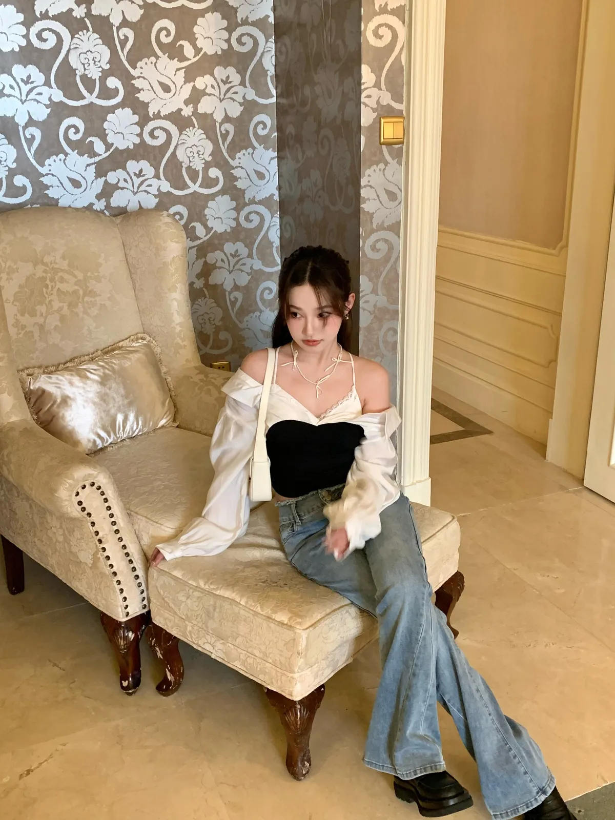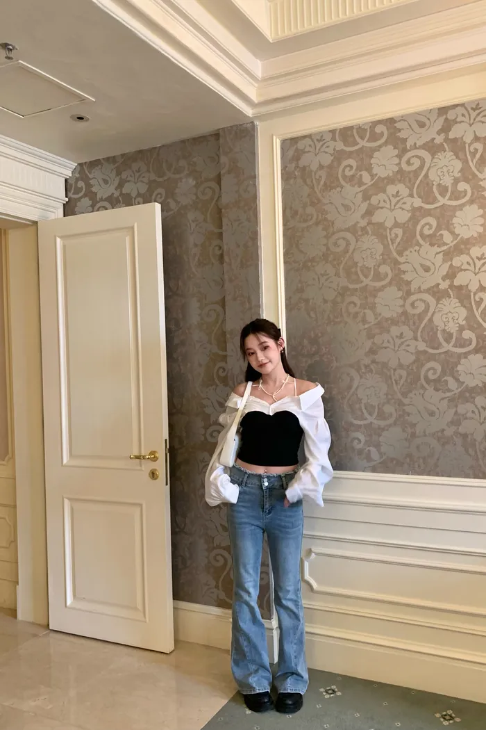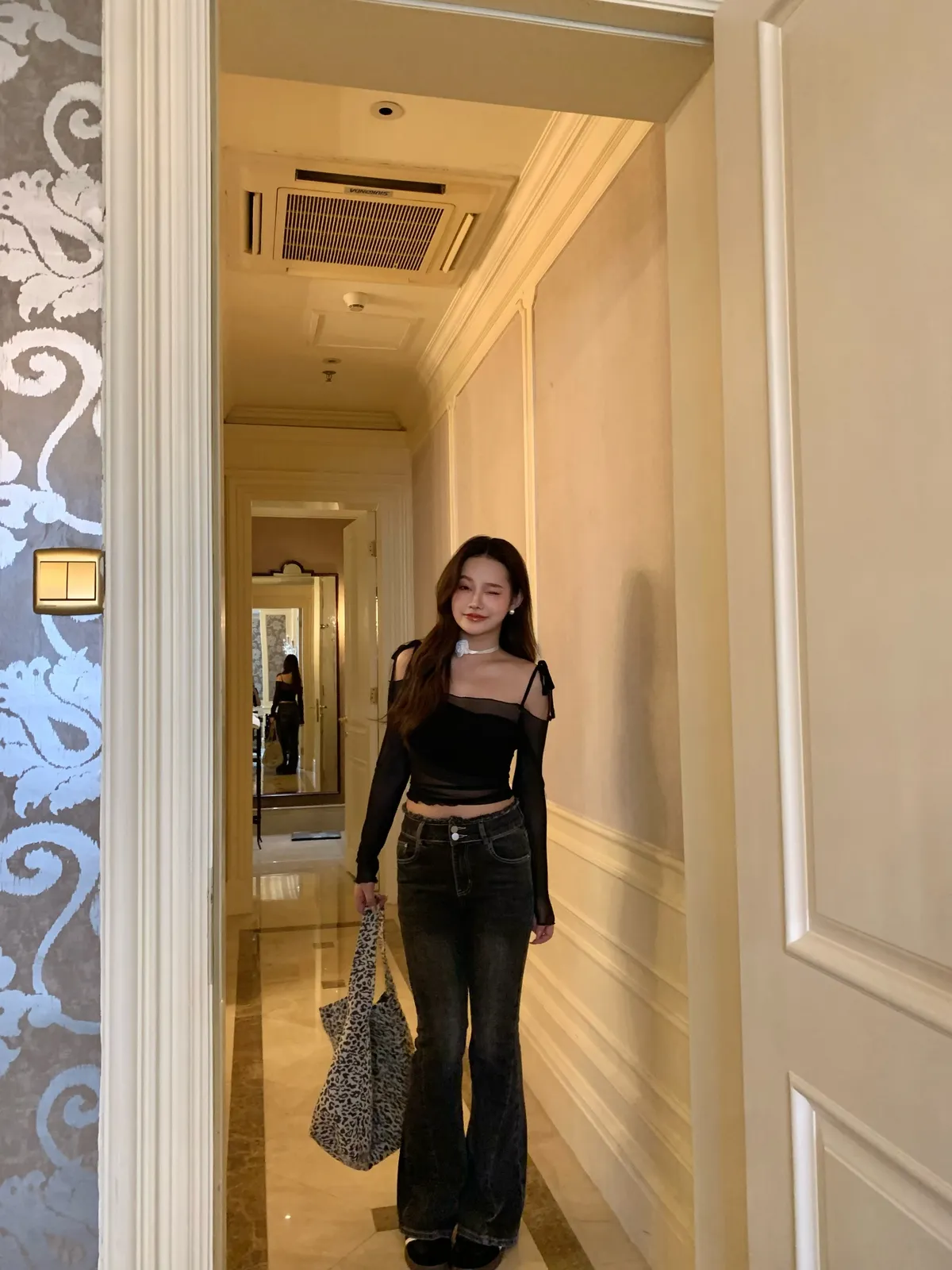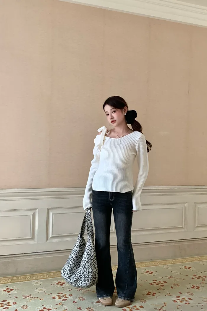 9095 芭比公主 蝴蝶結毛鬚喇叭褲
