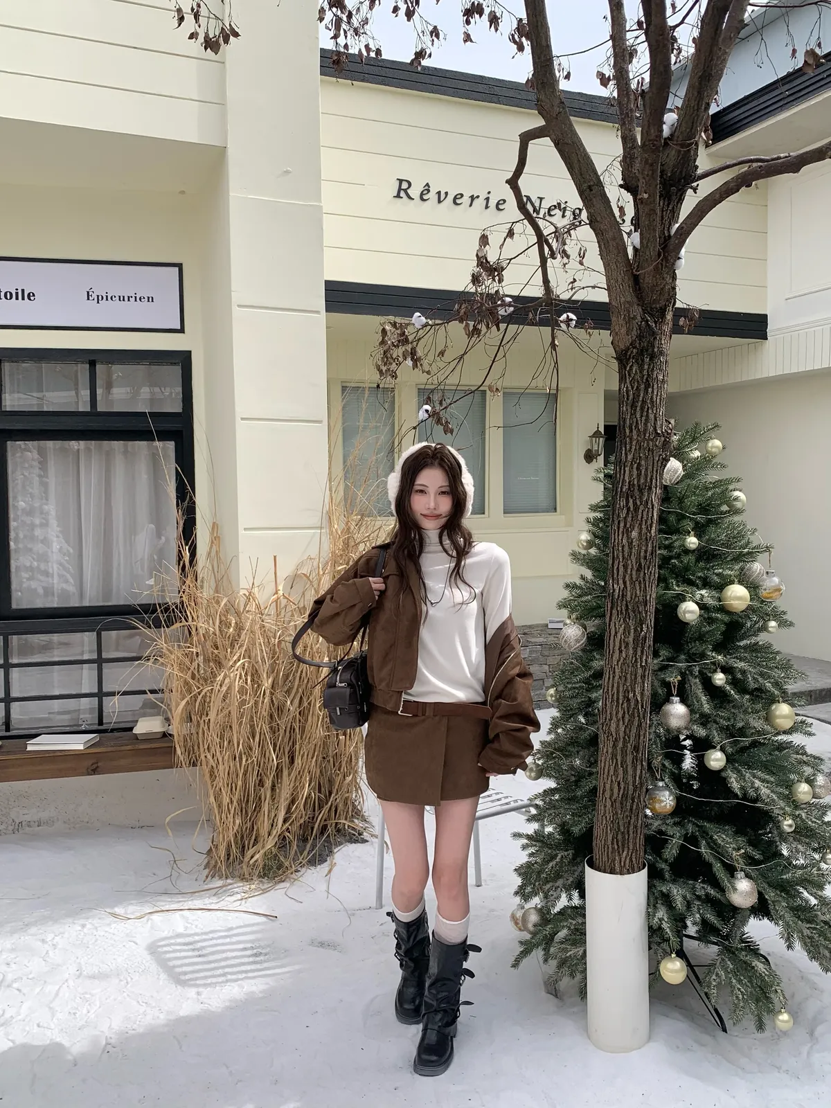 03 |2526 秋日糖炒栗 麂皮拼接外套