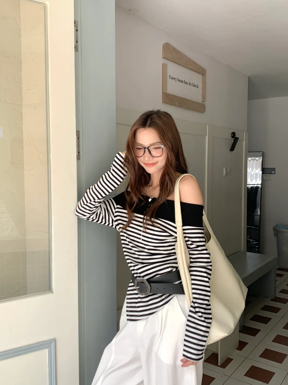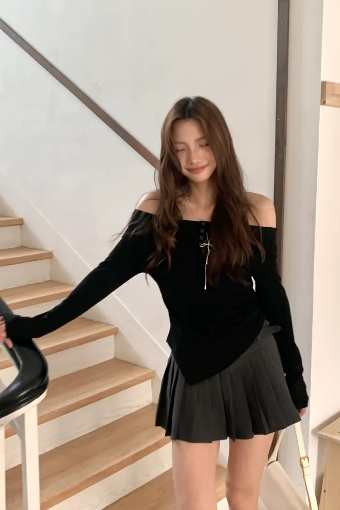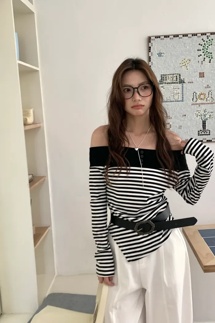 02|903 素描女孩 一字肩上衣